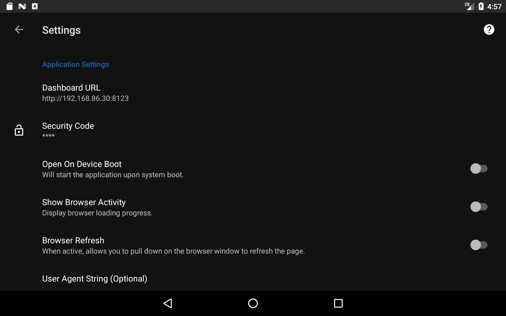 Abra as configurações clicando no ícone flutuante do painel. Nas configurações, defina sua página da web ou URL da plataforma de automação residencial. Defina o código para acessar as configurações, o código padrão é 1234. Você precisará desse código para retornar às configurações, então lembre -se!